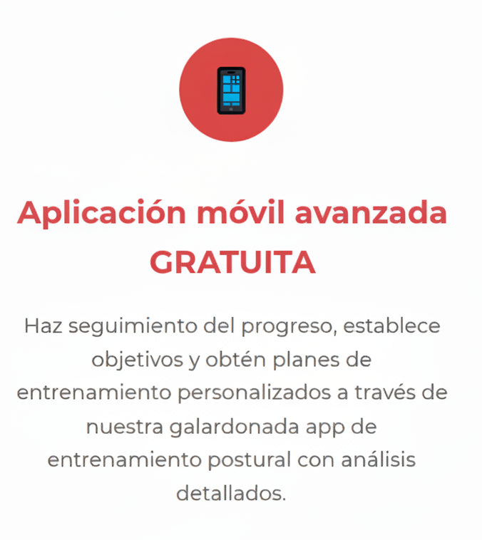 Gracias a su aplicación móvil, puedes medir tu rendimiento, seguir tu progreso y ver resultados reales y comprobables en tu postura y bienestar.